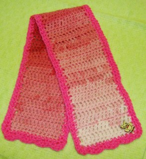 I didn’t follow a pattern with the scarf, but just used a mixture of double, half-double, and single crochet. I like it, but it did come out rather larger than the other items.