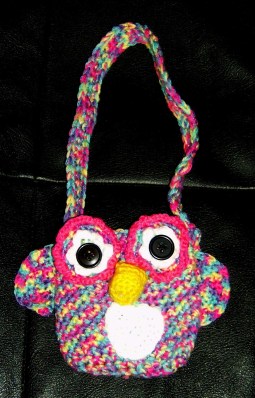 I think that, if I try this pattern again, I’m going to increase the chains, so that it is much larger, as the bag itself only turned out as 12 x 12 cms (4″ x 4″). Although only large enough for a small child, I’m very pleased with how it turned out – although I’m going to have to invest in some smaller black buttons to use as eyes, as I think the ones I used were a little bit too big.