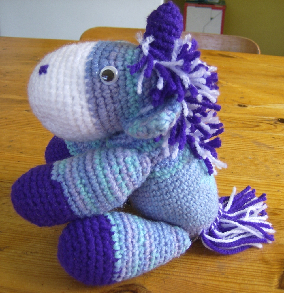 As I’ve said before, all this is very new to me, and so the dolphin and unicorn are only the 2nd and 3rd amigurumi-type items I’ve ever made (with RaggaRory the Lion being the 1st), and so, when it came to the mane and tail, I just couldn’t seem to follow the directions well, so I decided to make my own version – it was only after it was complete, and I was chatting to a friend who was also making the same Unicorn, that it suddenly clicked where I’d gone wrong, which helped my friend, but was too late for me 🙂