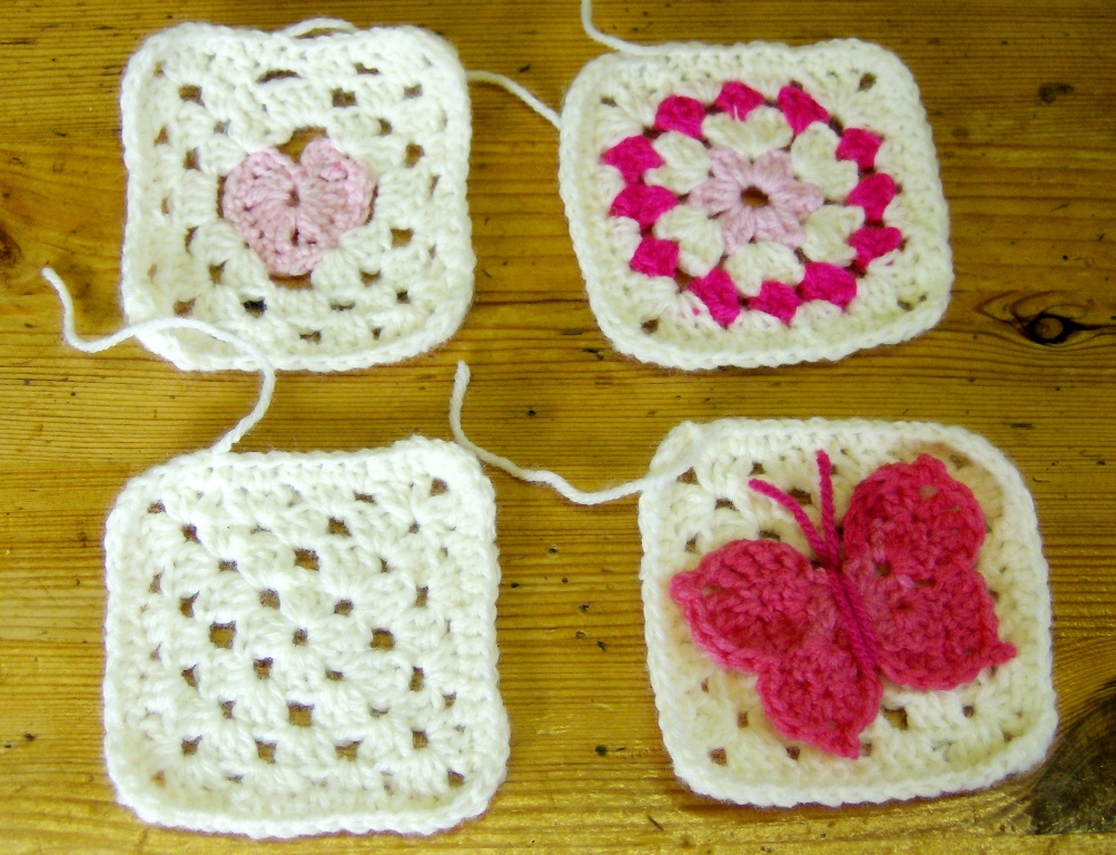 The theme for this, is Butterflies & Hearts, and using a pink & cream colour palette. The blanket is to be made using 4″ squares, so I’m going to need 112 of them, using 4 different patterns. Here’s the first of them: