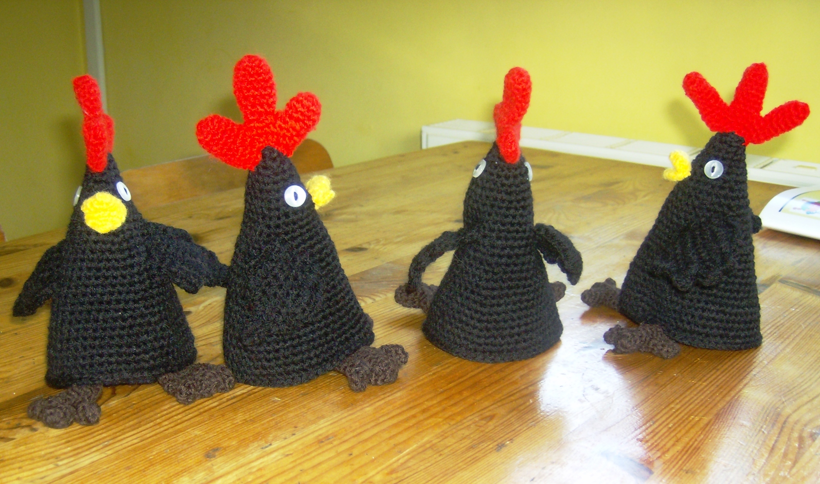 During our conversation, he also asked me if I could crochet a teapot cosy, in the shape of a chicken – well, I’m always eager to give things a go, and so I accepted his commission, and we added some other stuff to make a kitchen set up, all with the theme of chickens – but they had to be black ones, as these were, apparently, her favourites! Lol