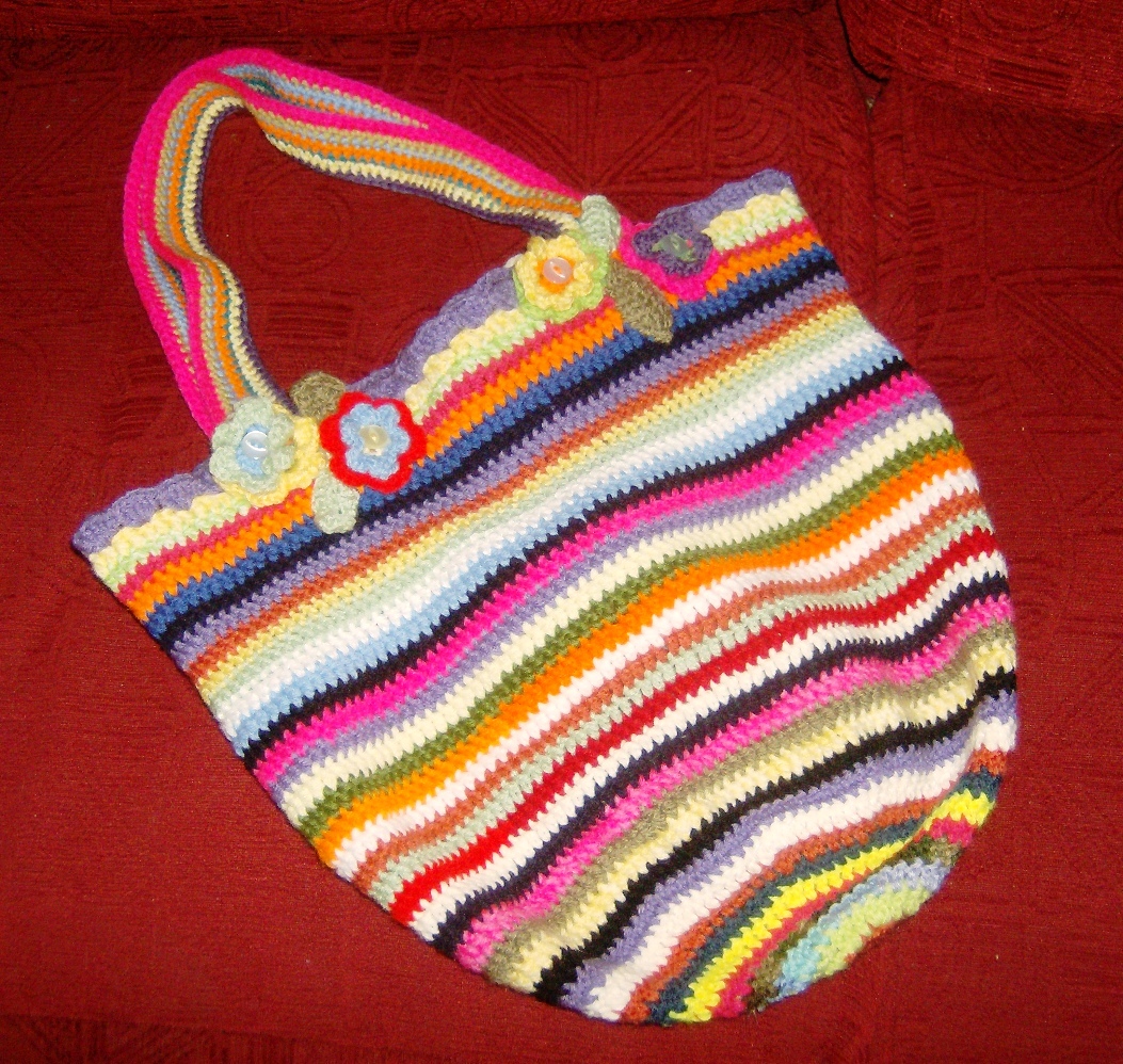 My next project to complete was a Rainbow Project Bag. I’d seen the link to this on a friend’s Blog and, as I was familiar with Lucy, from ‘Attic24′, I thought I’d have a go. I really loved the look of the bag and so I decided to make it specifically out of some of my scrap yarn, to use for my WIP’s.