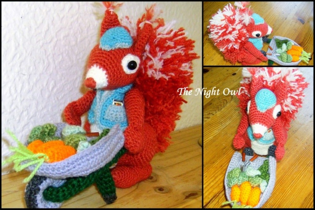 Her Cyril the Squirrel, all dressed up as a gardener, with his own wheelbarrow, was just so cute, and also very relevant for Mr Night Owl, that I had to make a start on it straight away!
