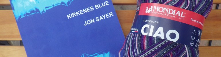 First there’s Mr Snail’s book Kirkenes Blue: a gripping yarn of intrigue and deceit under the beauty of the Northern Lights. And then there’s a ball of fabulous self-patterning 4 ply yarn. There’s 100g in the ball which is plenty to make a pair of socks or some lacy item and it’s 75% Merino wool so is lovely and soft, but with 25% synthetic fibre to make it hard wearing.