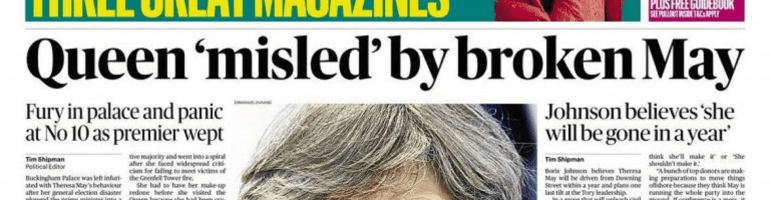 Last weekend’s Sunday Times ran a front-page story describing Buckingham Palace sources’ ‘exasperation’ that Theresa May ‘misled’ the Queen by claiming that she had done a deal with the DUP, when in fact it took her another seventeen days to do so: