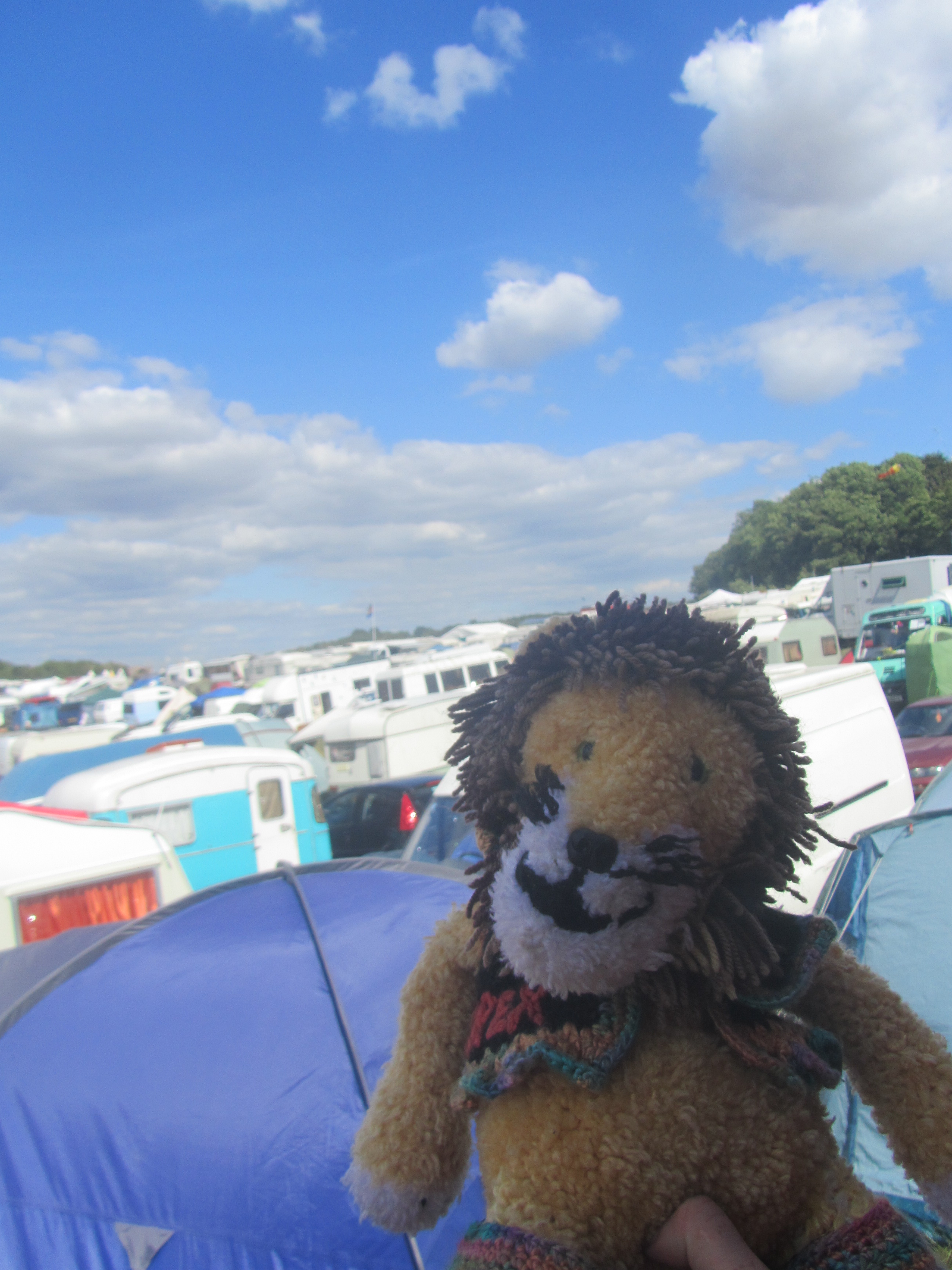 Feeling really happy again, RaggaRory, looked around, and saw that they were nearly at the gates to the Boomtown site, and he started looking madly around, trying to see everything he could. It seemed as though, in no time at all, Brex had set up their tent, snuggled in among those of all her friends, and RaggaRory was getting more and more excited. He wanted to see how many people had already set up around them, and so Brex lifted him up to have a look around.